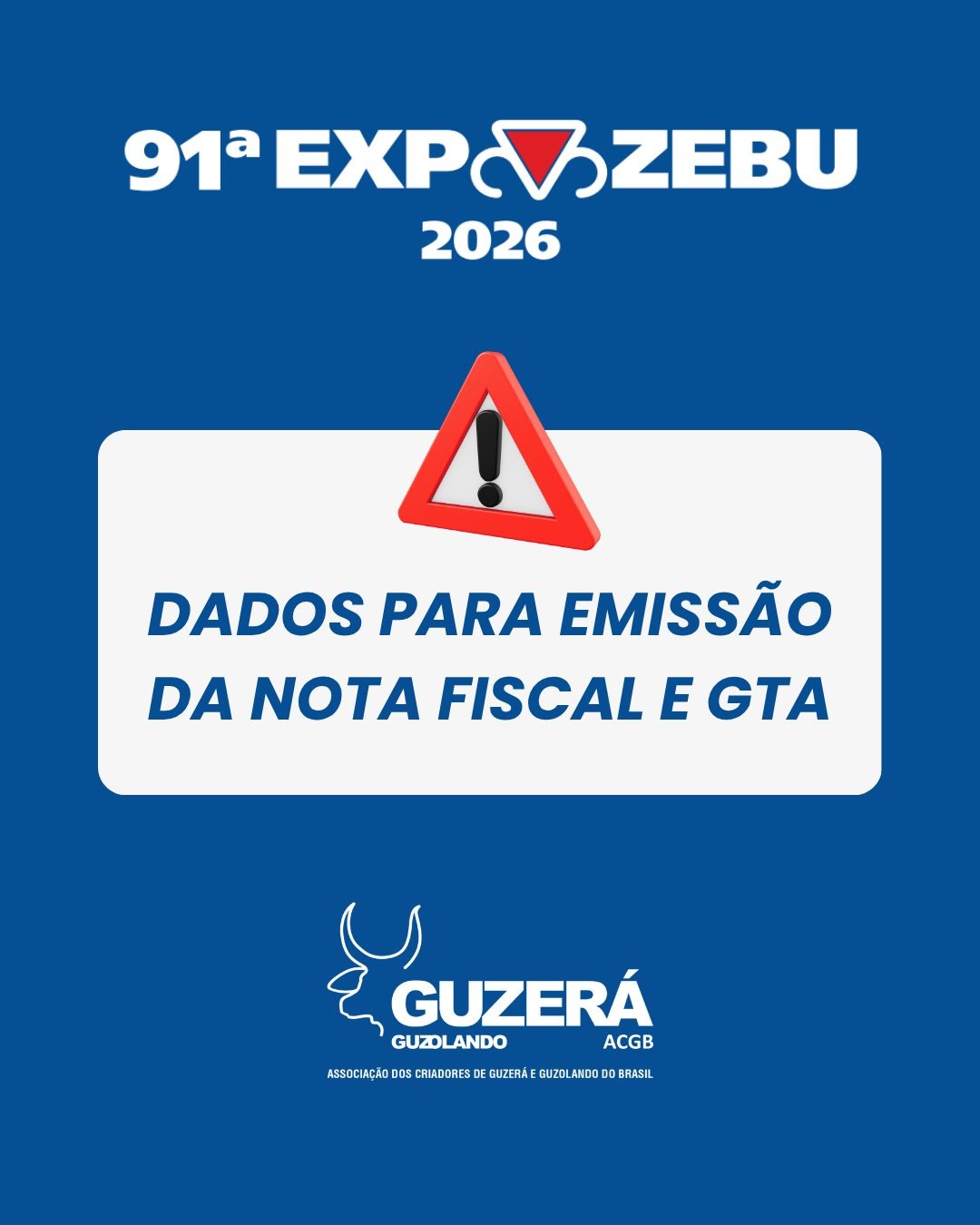 DADOS PARA EMISSÃO DE NOTA FISCAL E GTA – 91ª EXPOZEBU